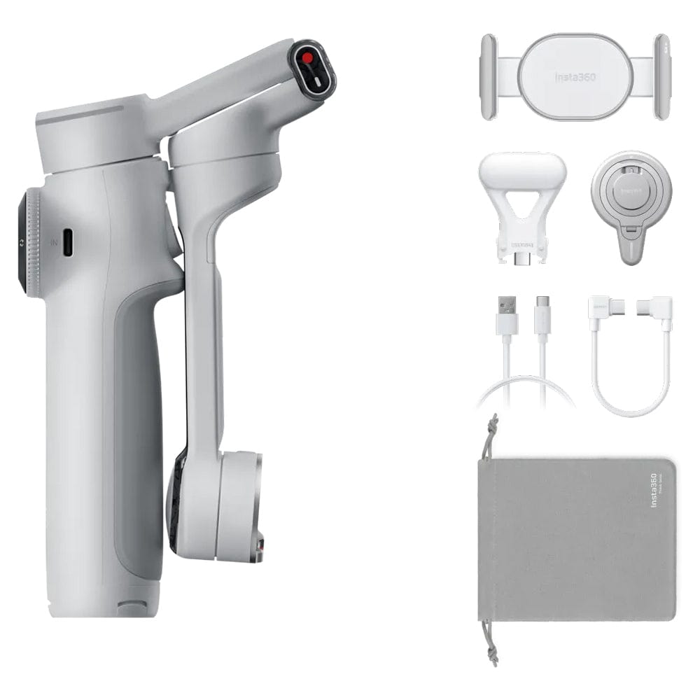 The Insta360 Flow 2 Pro is the next-gen AI-powered smartphone gimbal that gives creators cinematic stabilization in a pocket-ready design. Weighing just 357 g (gimbal) plus 25 g for the magnetic clamp, it’s perfect for travel, vlogging, livestreams, and dynamic shooting. Boasting 360° infinite pan, Deep Track 4.0, Active Zoom Tracking, Free Tilt Mode, multi-person and gesture tracking, it’s a powerhouse for both solo and group content creation. It also features an integrated selfie stick, tripod, ring light, and phone-charging power bank—all built into one device.