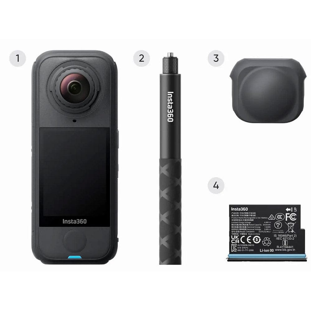 - Starter Bundle includes 1x Insta360 X4 Air, 1x Additional Battery, 1x 114cm Invisible Selfie Stick and 1x Lens Cap.